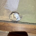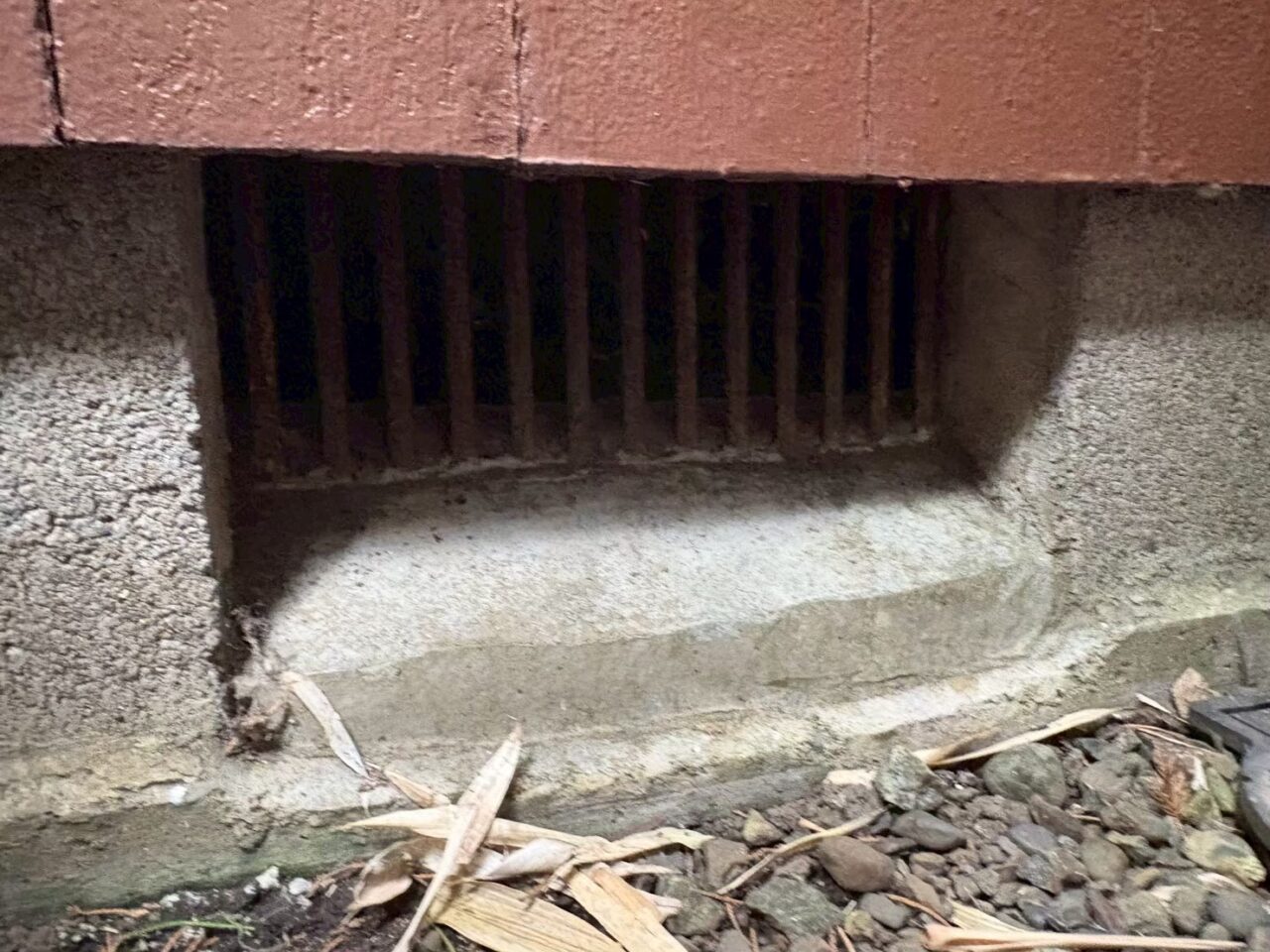 S様からは「天井裏で走り回る音がする」「キッチン周辺に黒い粒状のものが落ちている」とのご連絡をいただきました。現地調査の結果、クマネズミが建物内に侵入していることが判明しました。天井裏には糞が散乱しており、壁沿いには体の油分が付着した黒ずんだ跡も確認できました。住宅の外周を点検したところ、基礎部分の換気口や配管まわりに隙間があり、ネズミの出入り口になっていることがわかりました。