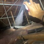 殺虫処理を実施し、コウモリに寄生していた害虫を駆除しました。外部侵入経路の封鎖作業を行い、コウモリの再侵入を防ぐための処理を完了しました。